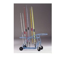 REF. 1AT01258 Carro para almacenar y transportar de jabalinas diseñado y creado por ANTUCO&EMD con el fin de facilitar el almacenamiento y transporte de complementos y elementos para la practica de atletismo Construidos en tubo curvado y esmaltado de 30mm de diámetro, son estables, ligeros y resistentes. Sus ruedas de goma de 200mm de diámetro…